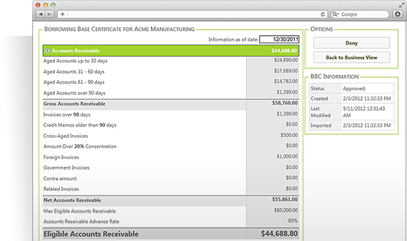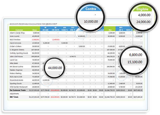 The 30-second BBC Patent pending technology reads lender specified data straight from the accounting system. Calculations that used to take hours now take less than a minute. |